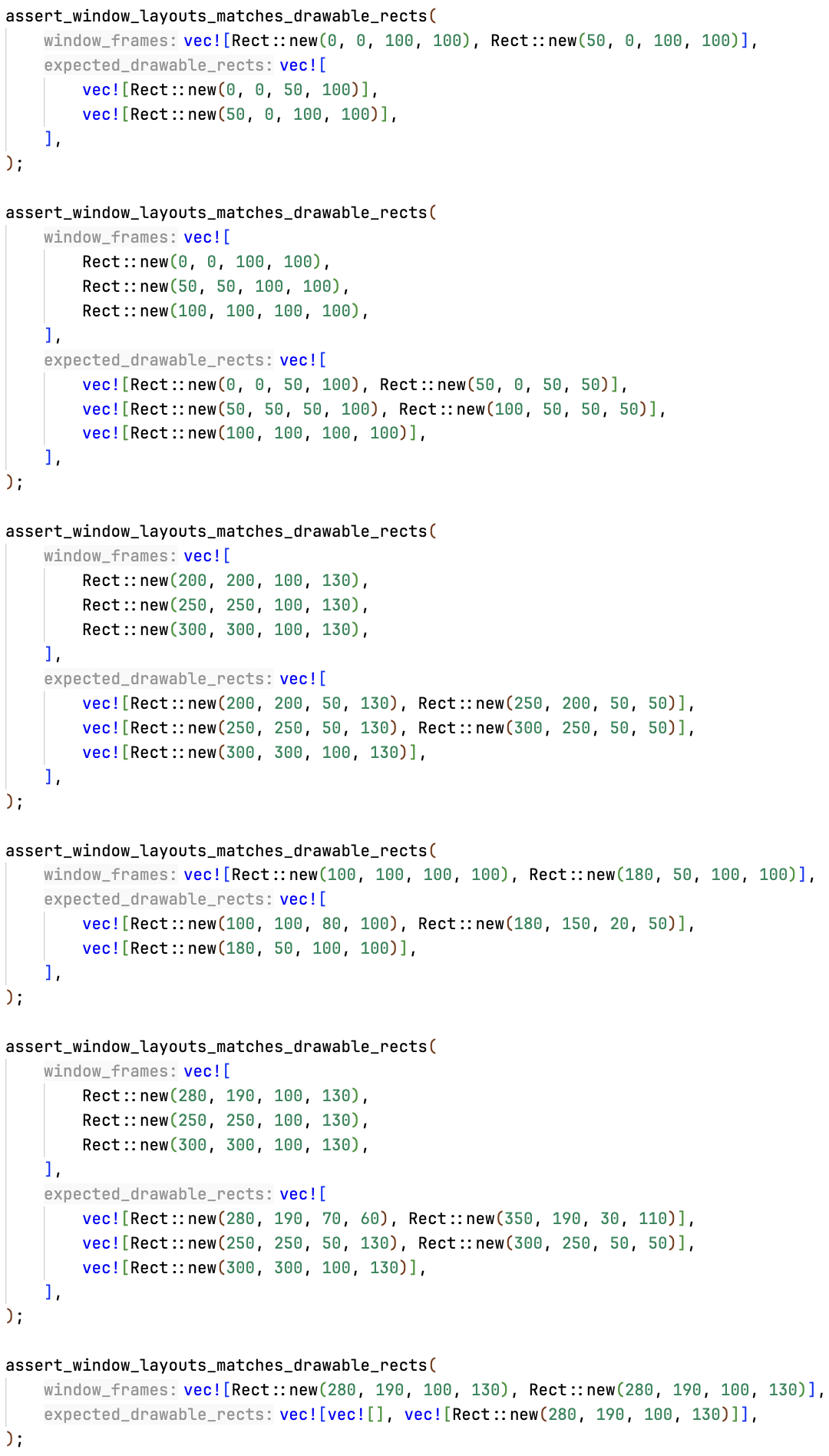 $ Rect splitting tests